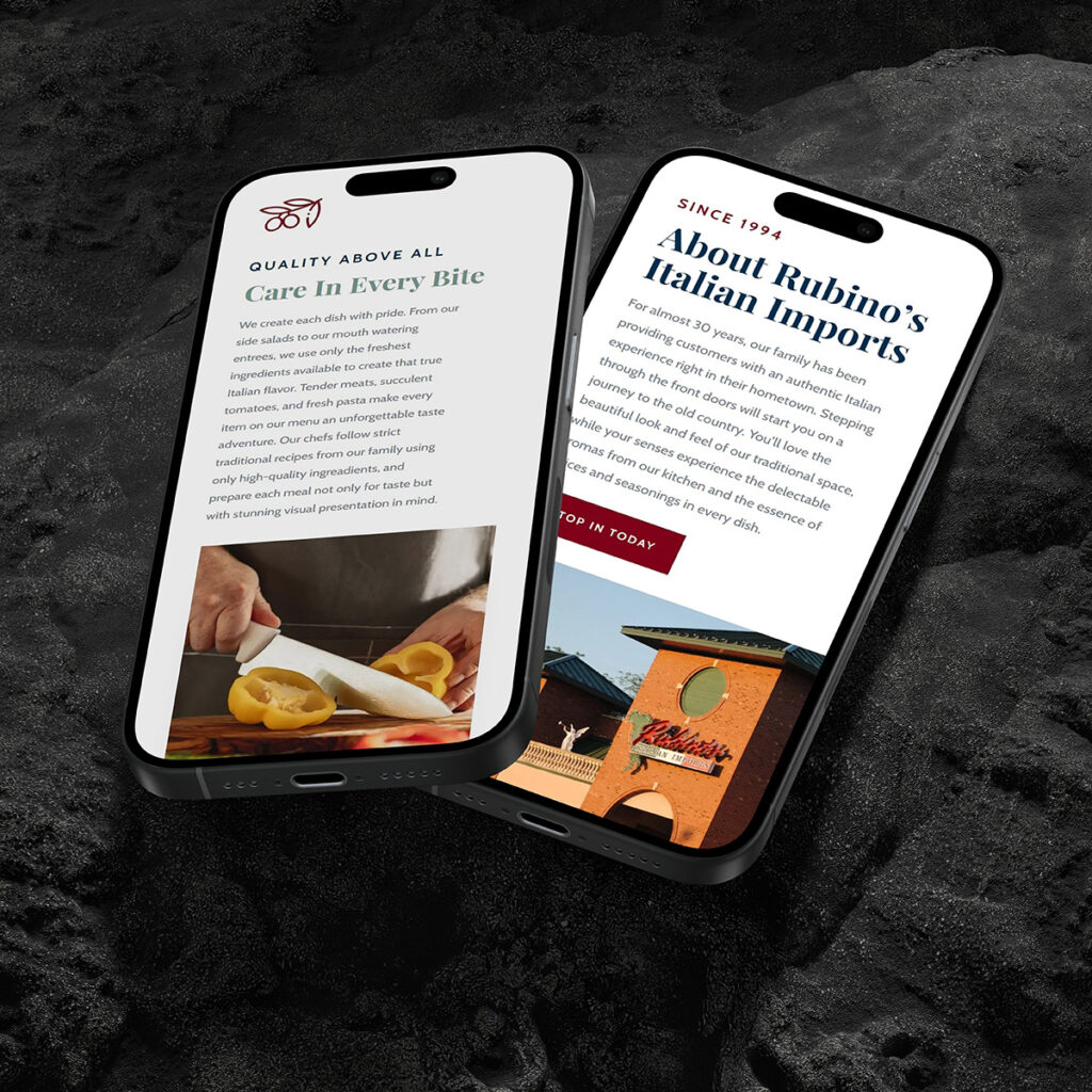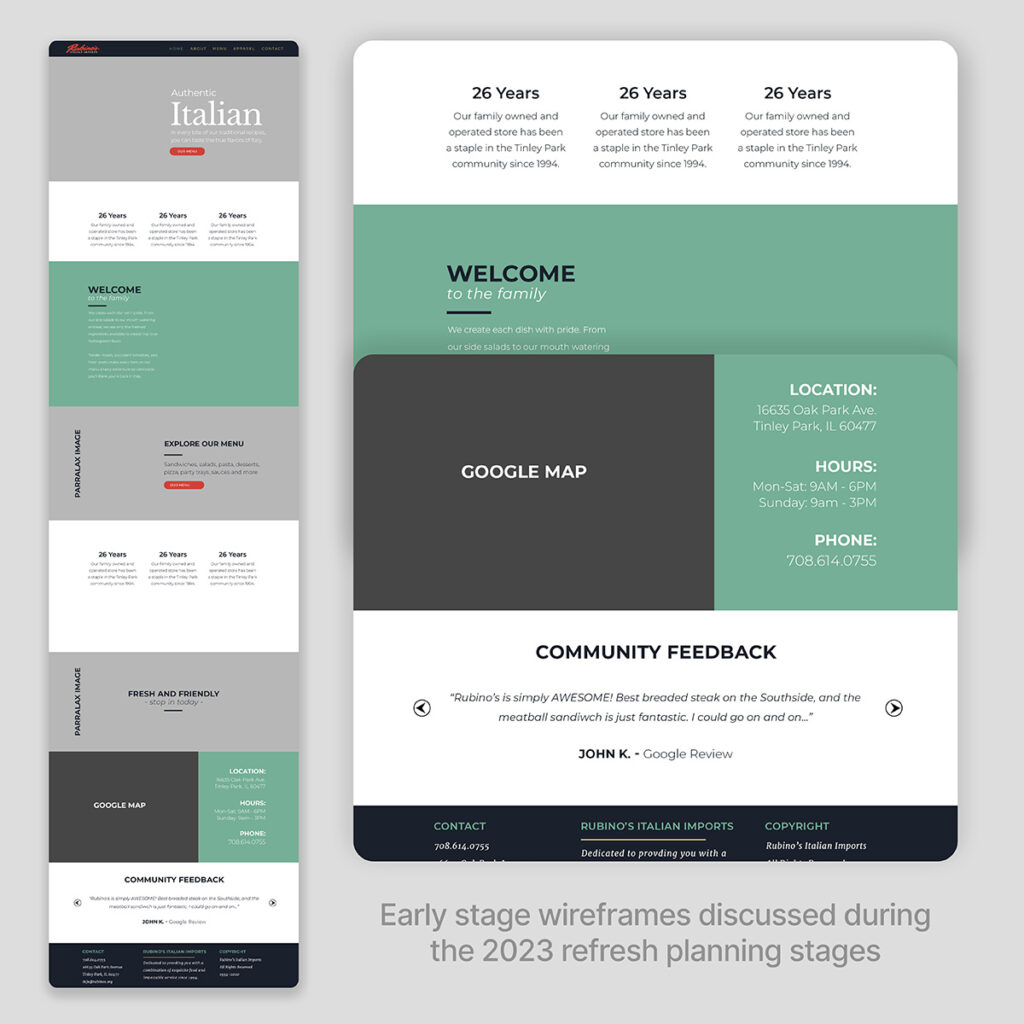 A key factor in this process was building a strong relationship with the Rubino family. Understanding their deep traditions was just as important as understanding their products. Knowing where flexibility existed and where heritage needed to remain untouched helped ensure that every new design decision felt authentic to both the family and their customers. This trust led to opportunities to work on additional business ventures within the Rubino group, including Everything Italian Distributors and the upcoming Rubino’s Express location in Blue Island, IL, slated to open in 2025.