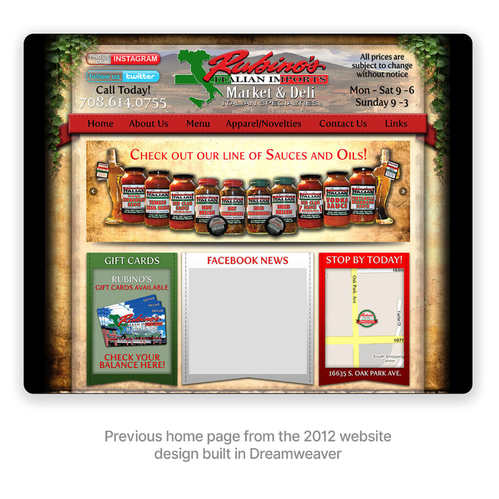 - The first was a full overhaul of their website—twice. The original site, which barely functioned when I first came on board, was completely redesigned to better showcase their deli, catering, and specialty items in early 2012. With limited development skills during this time period, the website became cramped for space, hard to maintain, and lacked a responsive mobile presence. Though it remained in place for 10+ years, we recognized the need for a modern, mobile-friendly experience that took in years of requests and feedback from loyal customers. In 2023, a second complete overhaul introduced a fresh design, responsive layout, and improved content structure built in WordPress. Much of the original content stayed in the new layout, and excess content was removed to help keep load times down and flexibility a must. Following its launch, mobile traffic surged by over 50% per month, leading to increased in-store foot traffic and an overall smoother customer experience.